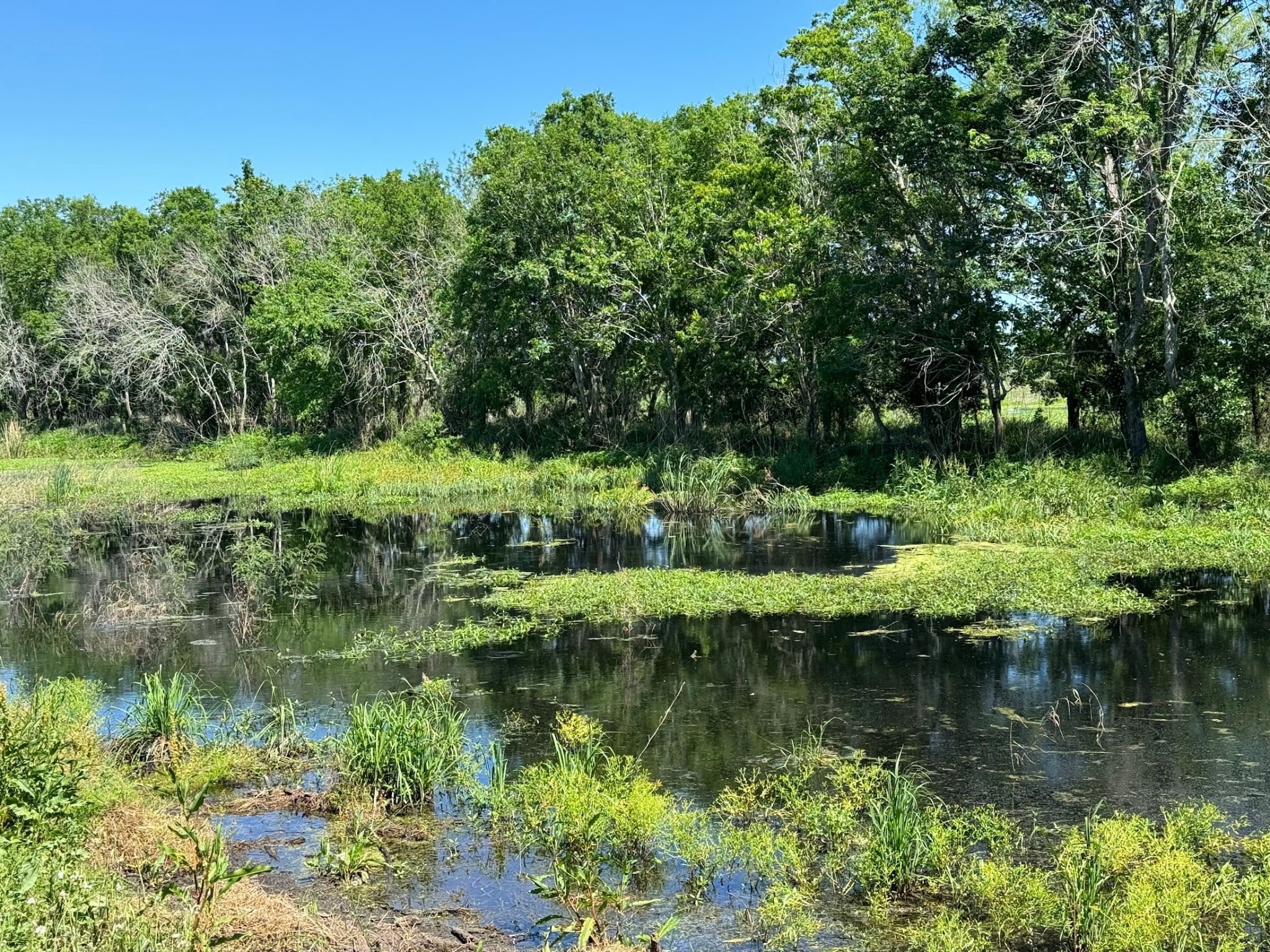 These are water hyacinths. Why are they thicker over here?